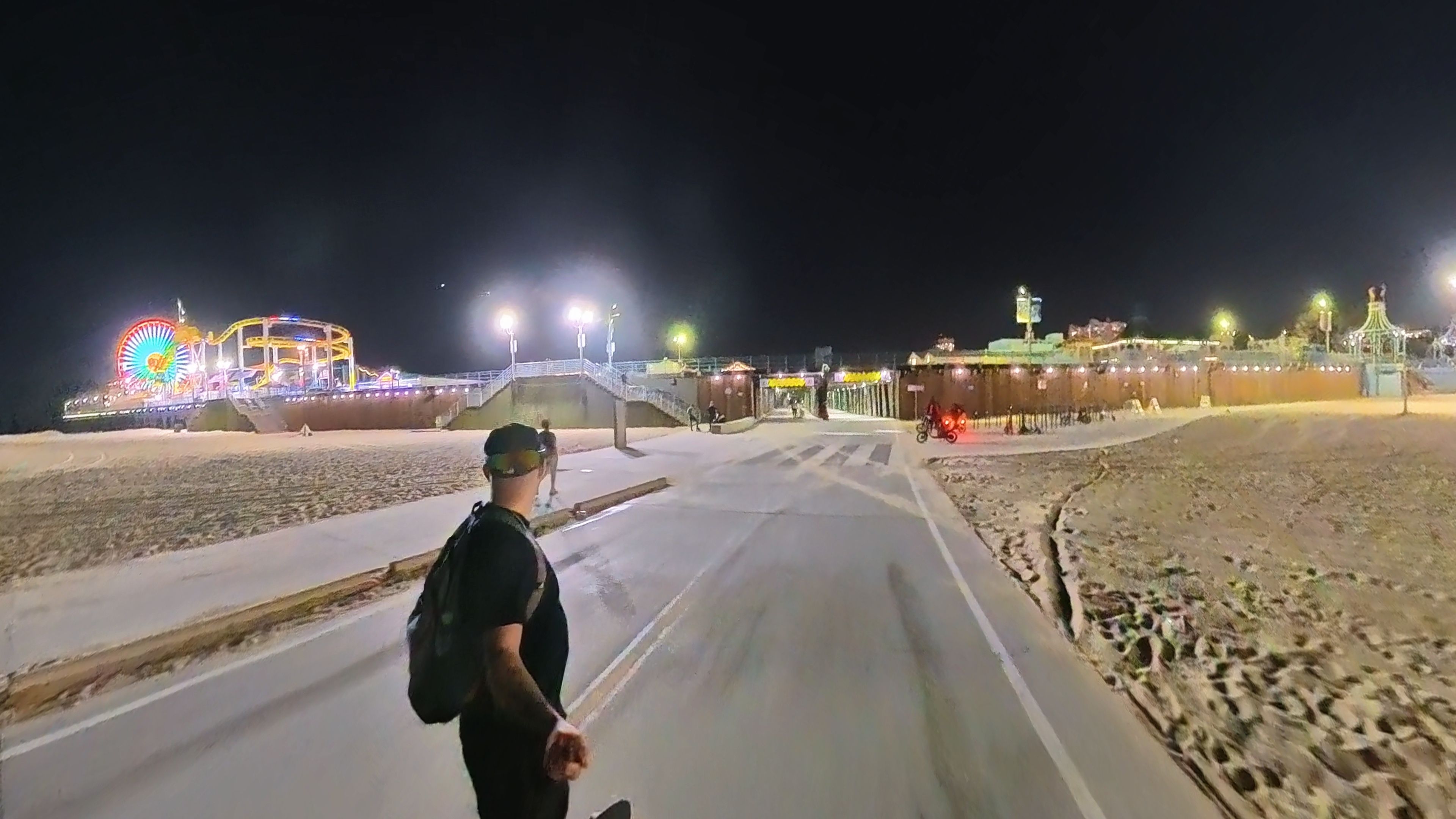 Skating back to the pier at night was a completely different experience than the ride going out. The whole trail had lit up with shops, hotels, and restaurants. It glowed all the way down the path, and every now and then someone would roll past with lit up bike wheels or lights strapped to their body, adding to the whole atmosphere moving through the dark.