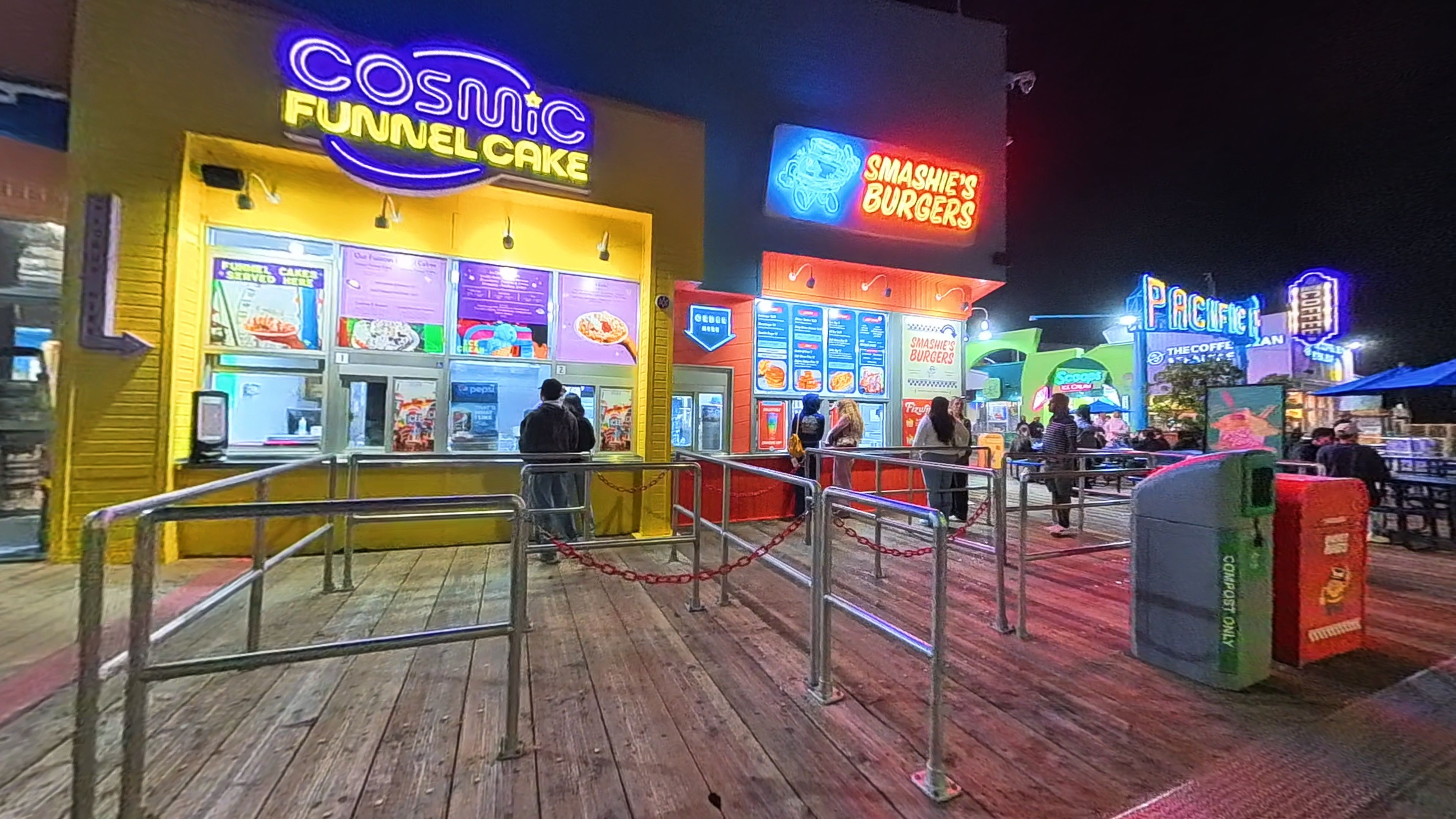 Coming back to the pier at night was a completely different experience than leaving it earlier in the day. The whole thing lights up with neon signs, carnival rides, and a buzzing crowd of people still out enjoying the evening. Just walking through everything was good enough for me. I passed a large arcade that I genuinely wish I had stuck around longer for, and the roller coaster and Ferris wheel were running well into the night with people lined up to ride.