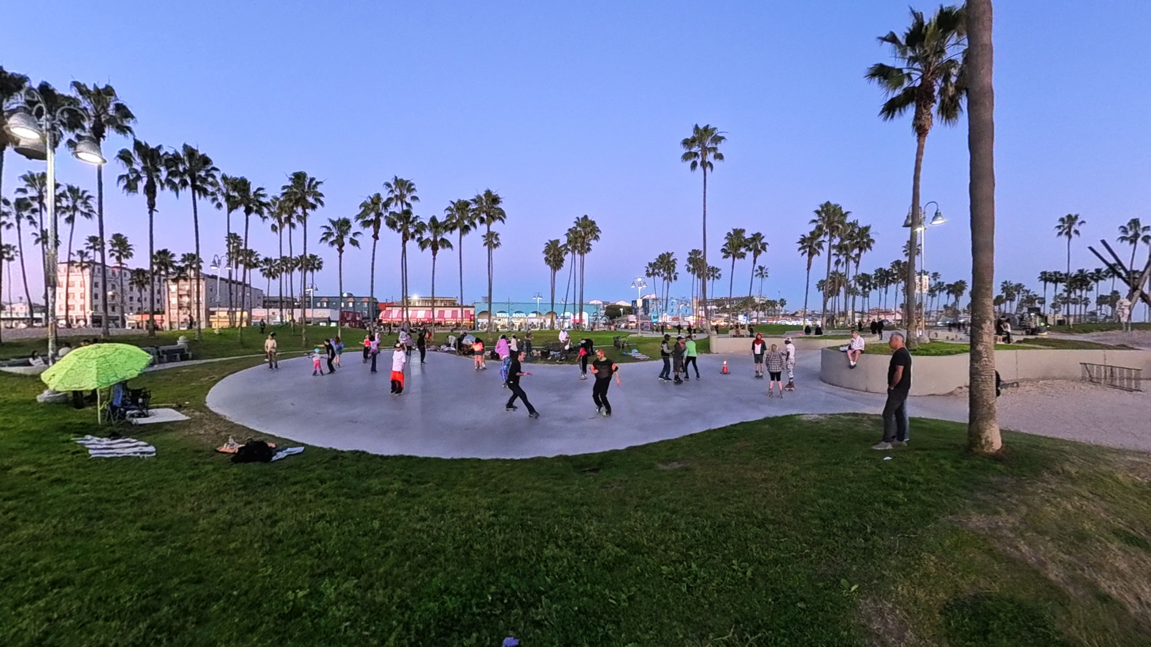 I always knew there was a skatepark at Venice, but I didn't know that just across the path from it, people gathered for an open skating ring too. It was a fun little discovery. With the sun going down and the lights starting to come on, the whole area shifted in energy. Music was playing, people were dancing, and skating was happening on both sides of the path. The skatepark on one side, the skating ring on the other, and a crowd of people just soaking it all in. This area came the most to life out of everything I saw on the trail.
